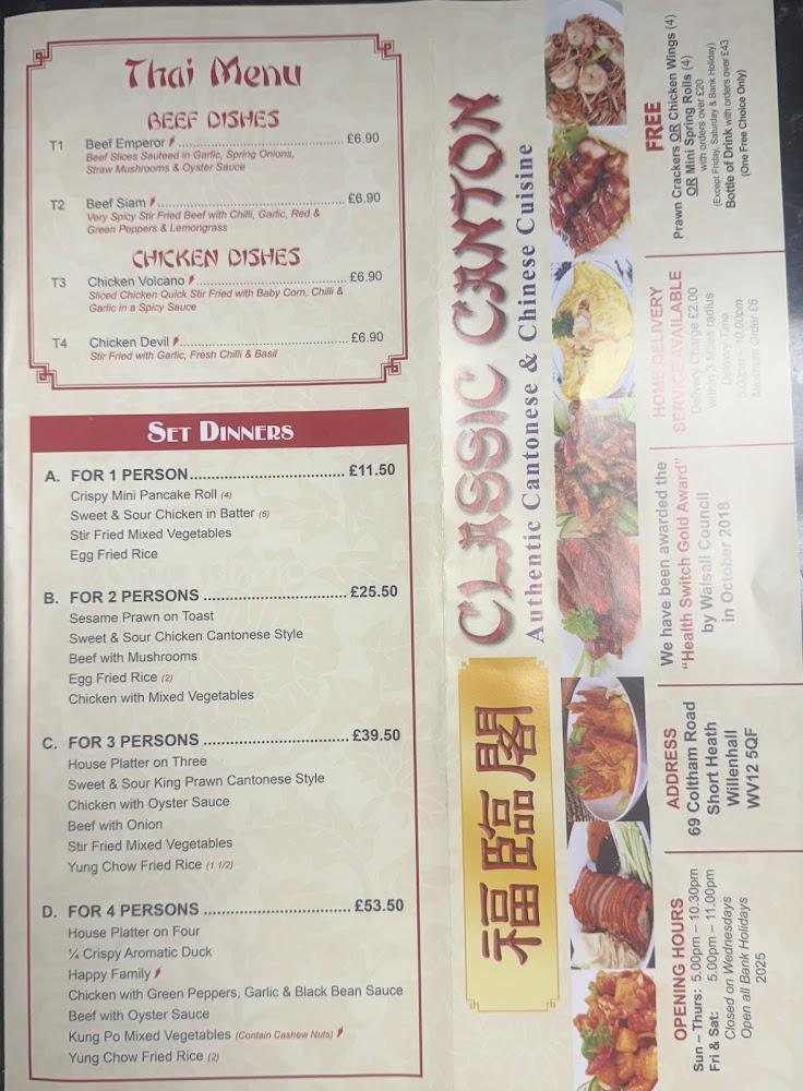 Located at 69 Coltham Rd, Willenhall WV12 5QF, Classic Canton stands out as an essential local eatery. The restaurant is wheel-chair accessible, making it easy for everyone to enjoy a hearty Chinese meal. The spot is well-known in the community for its fast service and delicious food. With a price range from £10–20, it offers great value for money without compromising on quality. Classic Canton becomes a bustling hotspot during dinner time, attracting diners from all over the area. Its cozy setting makes it suitable for casual dinners, and it's popular for both dine-in and takeaway orders. The restaurant sits close to other local businesses, making it a convenient stop for families and individuals who want a delightful meal without venturing far from home. Many customers rave about the convenient ordering system, making it straightforward to enjoy delicious food, whether dining in or taking away. Enjoy the comfort of a bustling restaurant atmosphere with the chance to taste authentic Chinese flavors that will keep you coming back.